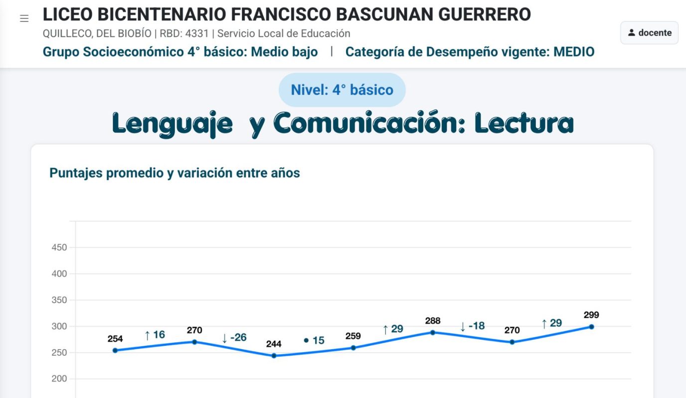 📖 Lectura: 299 puntos, lo que representa +29 puntos respecto a 2024 y +32 puntos sobre la media nacional del mismo grupo socioeconómico (GSE).